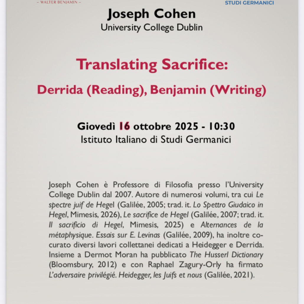 Il 28 maggio 2025 l'IISG ospita la presentazione del volume Walter Benjamin e gli stati d’eccezione. Ne discute l'autrice Anna Migliorini, con Dario Gentili, Gabriele Guerra, Massimo Palma.
