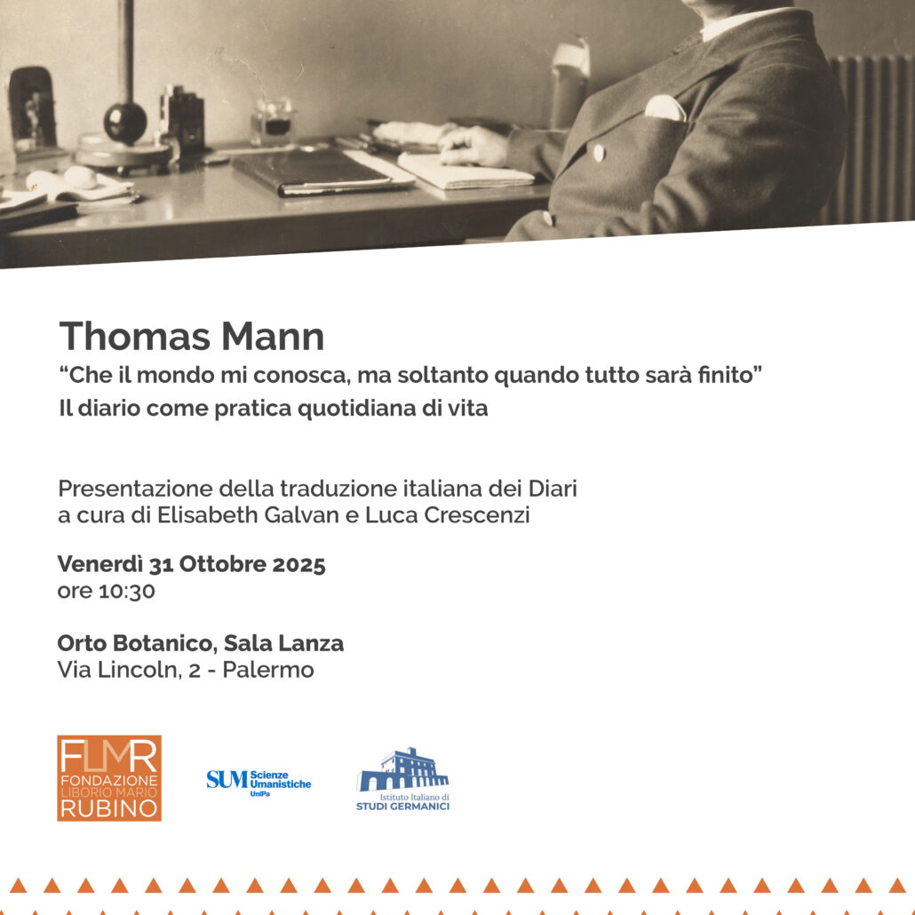 Il 31 ottobre 2025 l'Orto botanico di Palermo ospita la presentazione della traduzione italiana dei Diari di Thomas Mann a cura di Elisabeth Galvan e Luca Crescenzi.